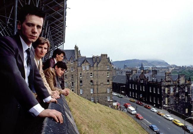 Simple Minds looking to the future on Castlehill, Edinburgh, August 1981 (from left) Jim Kerr, Derek Forbes, Charlie Burchill, Mick MacNeil.