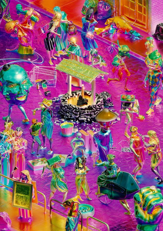 WHEN THOM YORKE and Mark Pritchard released the first track from their collaborative albumTall Talesin February, they thoughtfully included a free nightmare with every stream. Directed by the Australian artist, filmmaker and “third member” of the project, Jonathan Zawada, the video for Back In The Game featured a parade of hideous creatures – a weird fish with another fish in its mouth, a Lord Of The Flies-style pig, a tentacled mini-Cthulhu – marching to a museum to participate in a bonfire of art. Rendered in the squashy DayGlo of kids’ TV, it became a queasy – if somewhat blunt – illustration of a world fallen to grotesque forces.