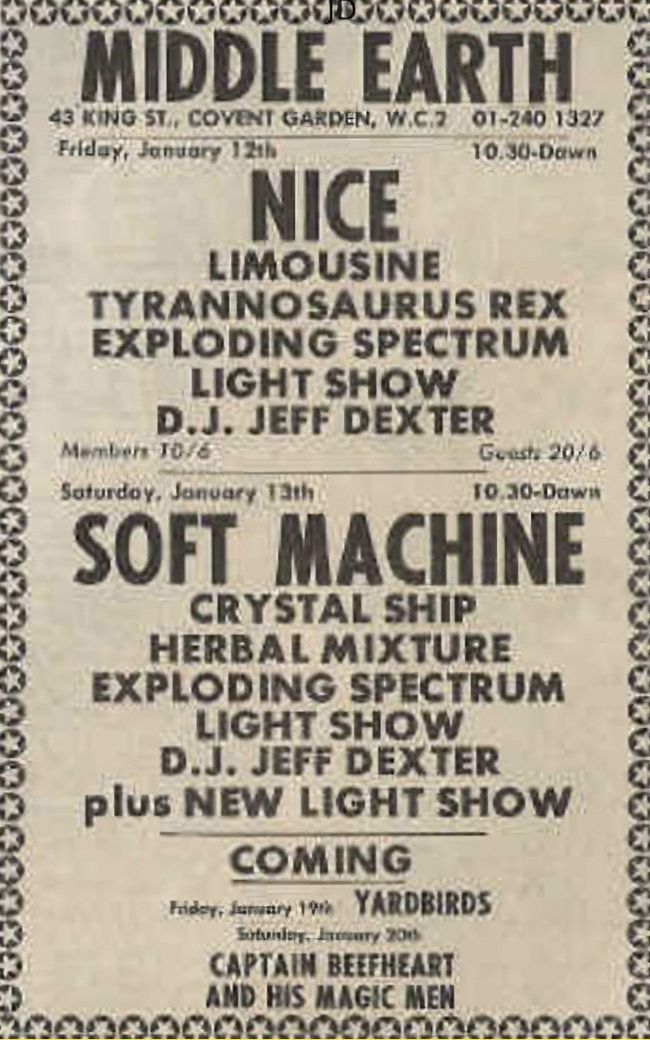 LAUNCHED AFTER the UFO Club was forced to vacate its original locale beneath the Blarney in Tottenham Court Road, and based initially in Covent Garden from August 1967, Middle Earth became London’s prime destination for underground thrills accompanied by liquid lights. At its peak it was hosting big bills three nights a week headlined by the likes of Soft Machine, Traffic, Blossom Toes, Tim Buckley, Jefferson Airplane and Captain Beefheart, all of whom are found in a new Cherry Red 3-CD box calledMiddle Earth: The Soundtrack Of London’s Legendary Psychedelic Club 1967-1969 ★★★★.