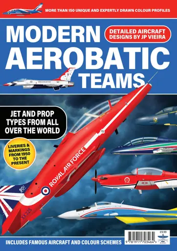 Modern Aerobatic Teams features 150 profile artworks of display team aircraft, past and present, by renowned aviation artist JP Vieira – including, from Britain’s RAF, the Red Arrows’ Hawk, the Firebirds’ Lightning, the Red Pelicans’ Jet Provost and the Black Arrows’ Hunter, as well as, from the USAF, the Thunderbirds’ F-84G, the F-100C, the short-lived F-105B, F-4, T-38 and F-16.