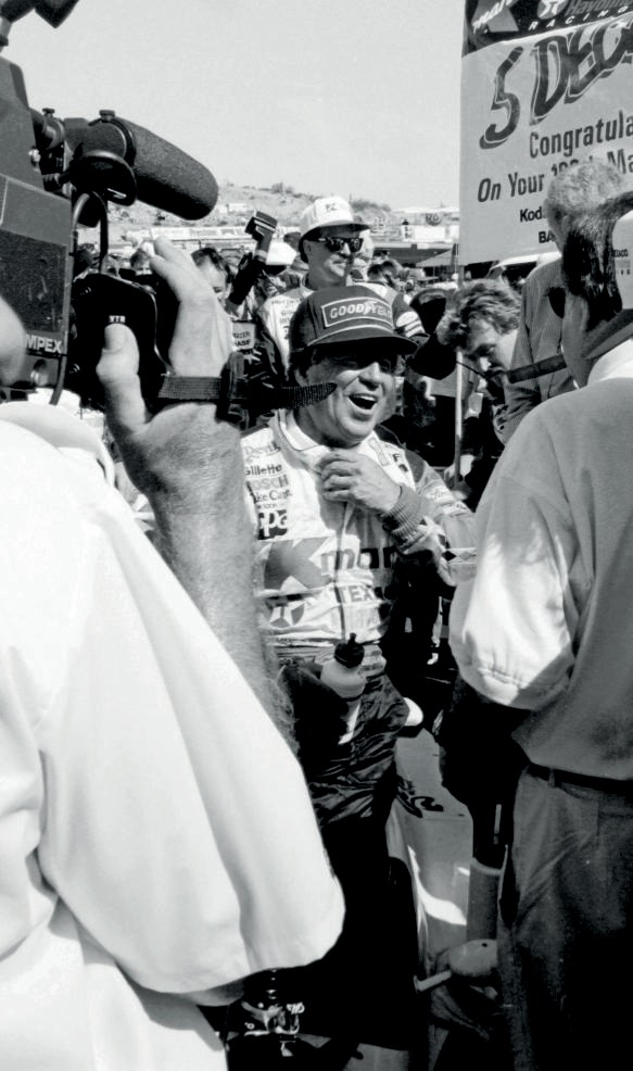 This image was unexpected, not because Mario Andretti had just scored his first Indy Car win in five years, but thanks to the manner in which the photo opportunity had arisen. I was in Arizona in April 1993 to witness Nigel Mansell’s first Indy Car race on an oval. Having left F1 in a huff after failing to agree terms for another season with Williams-Renault, the reigning world champion had kicked off his new life with a very impressive win from pole at Surfers Paradise in Australia.