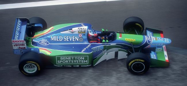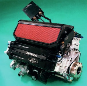Top: Michael Schumacher’s 1994 Benetton, powered by the Ford-funded Zetec-R V8, inset