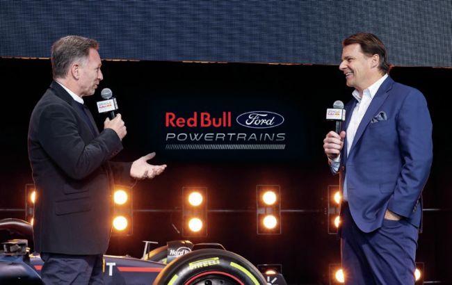 Red Bull’s Christian Horner and Ford CEO Jim Farley announce their F1 tie-up.
