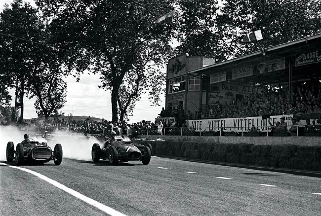 Albi GP, with Fangio, left, racing a V16 BRM P15 and Ascari in a V12 Ferrari 375