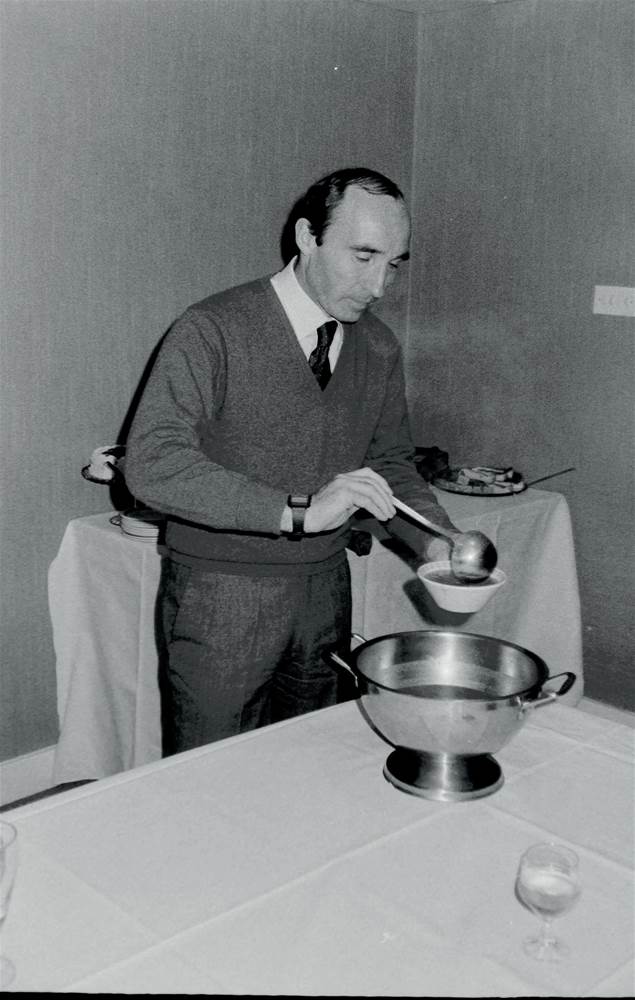 FRANK WILLIAMS WAS BREAKING BREAD AND new ground when this was taken in January 1985. It was Frank’s idea to have some of ‘the lads’ to lunch and chew the fat prior to the start of a new season. The only formality in this easy-going gathering was that Frank – to a background of rude remarks – insisted on serving us from a soup cauldron brought from the canteen. None of your posh catering and silver service here. There were no speeches or rash promises for the races ahead. Frank, as usual, wanted to extract as much information from his guests as we could from him.