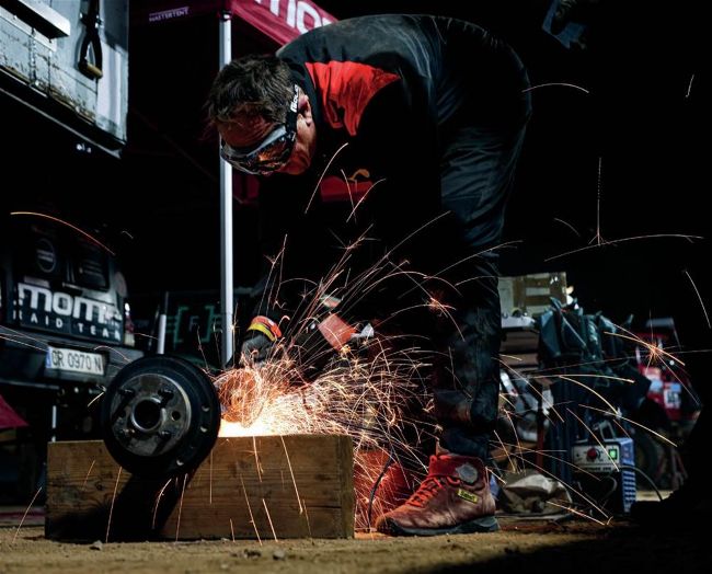 Busy mechanic of Moma Raid, which ran a Fiat Panda 4x4 and Pegaso truck.