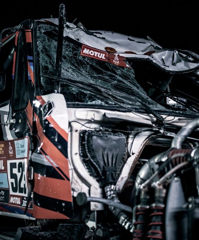 Damaged Scania truck of Dakarspeed