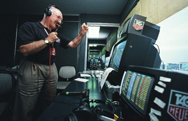 We weren’t actually working together; the open-plan style of the booths above the grandstand on the start/finish straight meant we were encapsulated in a large Portakabin with commentators from all over the world separated by short Perspex screens. Murray was teamed up with Jonathan Palmer for the BBC coverage overseen by producer Mark Wilkin while I was sharing the Eurosport TV space with John Watson. It felt so bizarre; to look across and see the man whose every word I had hung onto while falling in love with motor sport and to find myself shouting about the same dramas on track.