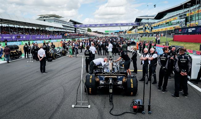Apex GP on the back of the Silverstone grid. The team even had its own ‘prat perch’ on the pitwall for added reality