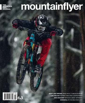 Pushing past limits. Hungry for the unknown. Caught on the trail after sundown. Running low on water and possibly lost. Sometimes a mountain bike lands us in uncomfortable positions. Sometimes we’ve even sought it out. These are the rides and moments on the trail that define us, provide a new perspective or reawaken a passion for the sport. The Winter 2020 issue of Mountain Flyer (No. 63) is packed with stories and photographs that touch on the mountain biker’s desire to seek out both adventure and misadventure. Writer Lydia Tanner finds out why ultra-endurance athlete Lael Wilcox keeps pushing boundaries. Chain of Fools columnist Whitney James shares why it’s good to feel scared every once in a while. Andrew Findlay’s overnight adventure in British Columbia’s backcountry leads him to question humanity’s place in the wild. And Chad Corbin abandons the safe path to pursue a framebuilding career.