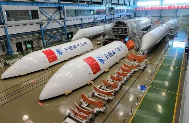 Construction of the Long March 5B rocket that will launch the core module, called Tianhe