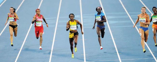 But the Jamaican had both a strong finish, and a strong start. After powering ahead in the first half of the race, although 100m fifth-placer Schippers was quickly closing in lane four, the gap which Thompson had already created was too big for the Dutch world champion and former heptathlete to make up. The top two from last year’s IAAF World Championships in Beijing were switched, with Schippers falling as she reached the line, while Bowie pipped Ivory Coast’s Marie-Josee Ta Lou for bronze to gain a second medal of the Games after her 100m silver.