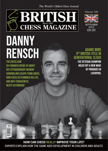 Our cover story features an exclusive interview with Chess.com co-founder Danny Rensch about his new memoir, Dark Squares: How Chess Saved My Life, which chronicles his escape from a cult, his journey as a chess prodigy, and his philosophy of forgiveness. This issue also covers the 111th British Championship, where Michael Adams claimed his ninth