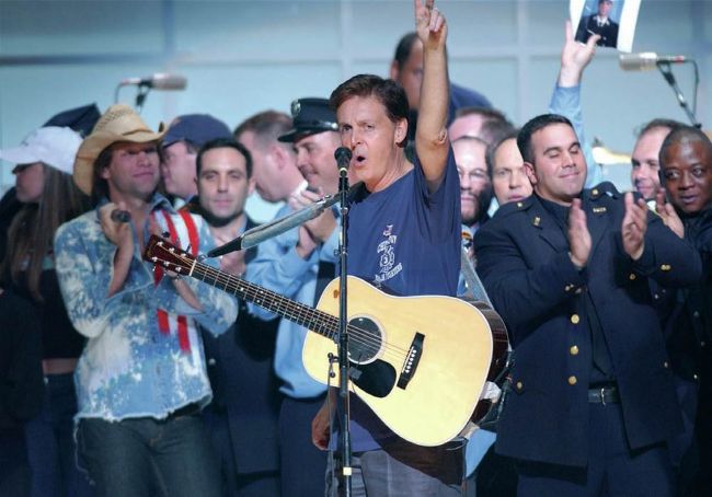 On September 11th 2001, Paul witnessed the 9/11 New York attacks first-hand from a plane on the tarmac of New York’s JFK Airport and organised A Concert For New York City to benefit the families of people who had died. With a line-up including the Stones, David Bowie, The Who, Elton John, Billy Joel and Jay-Z, the concert, which took place in Madison Square Garden on October 20, was a huge success, raising $35 million. He also penned the song Freedom; it was too late to be listed in the completed artwork of his next album, Driving Rain, but it was included as a hidden track.
