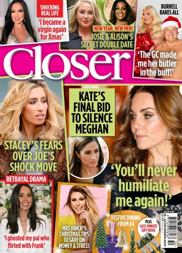 Burrell bares all for the GC and Kate's final bid to silence Meghan. Plus, Mrs. Hinch's money-saving Christmas tips. Plus, Stacey's fears over Joe's shocking move and real-life festive dining ideas.