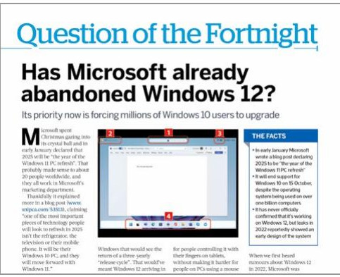 In Issue 702’s ‘Question of the Fortnight’ (pictured below right) you say “Windows 10 users won’t make the leap to 11 if they think Windows 12 is on the horizon”. Spot on.
