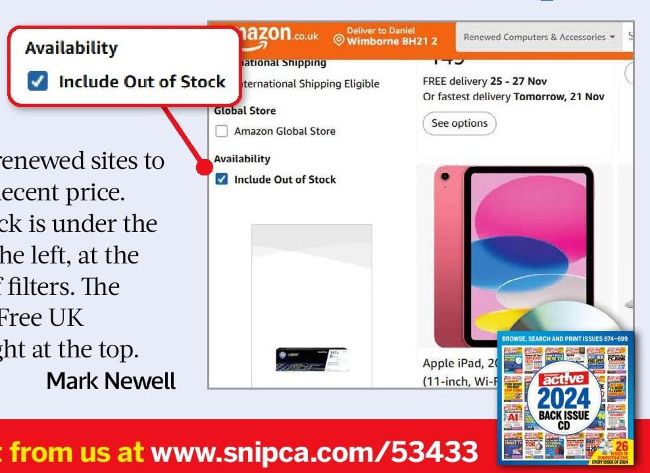Issue 723’s Cover Feature on Amazon should help me find well-priced stocking-fillers this Christmas. I was already a regular shopper on its Renewed section (www.snipca. com/56830), where I’ve bought refurbished tablets, laptops and phones in the past. They’ve all worked well.