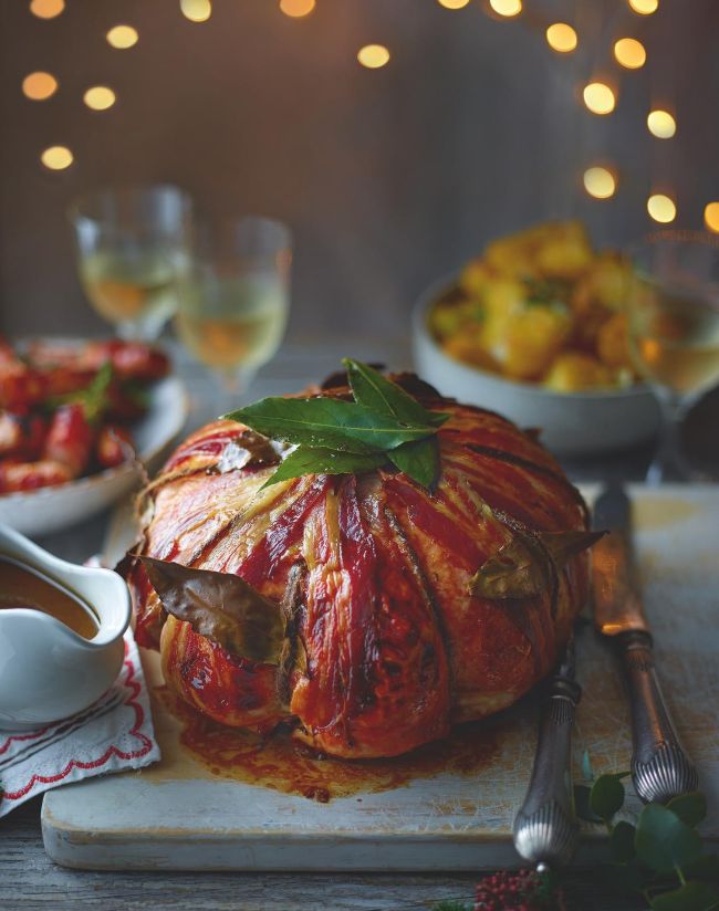 Turkey cushion with fruity sausagemeat stuffing, p48