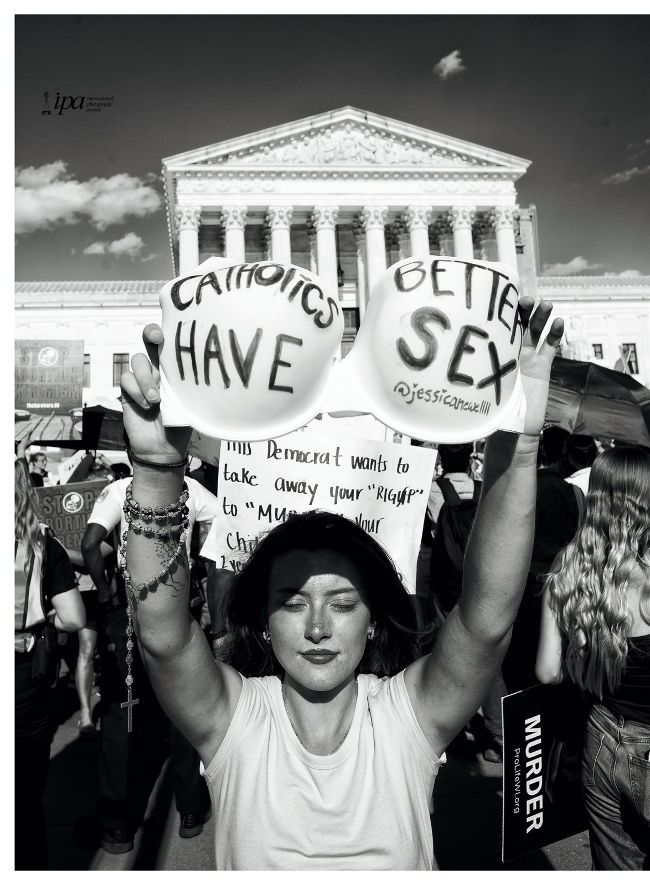 “The series started on June 24, 2022, the day the US Supreme Court overturned a 50-yearold law that guaranteed a woman’s right to choose. I felt it was crucial to document as many protests as possible, whether in front of the Supreme Court or throughout Washington DC. The gravity of this decision was immense so I wanted to convey the emotional weight of this moment. With such high stakes on both the Pro-Life and Pro-Choice sides, I focused on the energy of the crowd, the messages on their signs and the historical context of the locations where they were protesting.