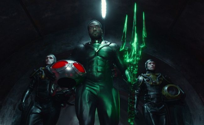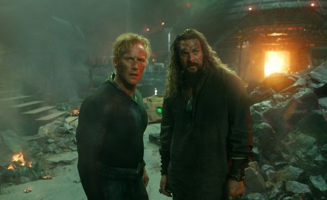 Arthur (Jason Momoa) with his trusty trident; But Manta’s (Yahya Abdul-Mateen II) is even bigger; Orm (Patrick Wilson) and Arthur have a heavy night out.