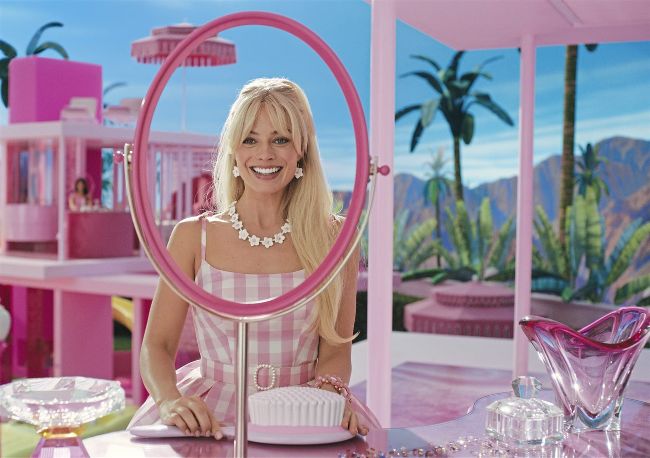 In the pink: Barbie (Margot Robbie) reflects on her seemingly idyllic life;