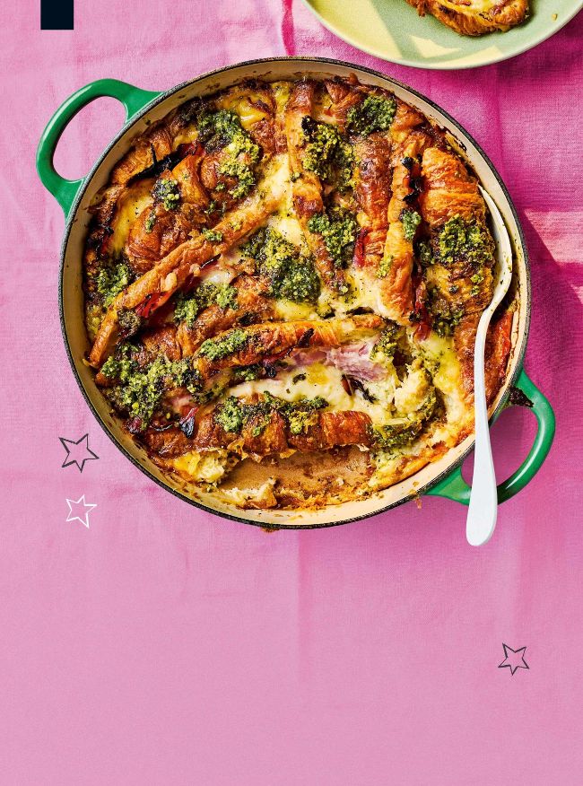 This is so indulgent and delicious – perfect for brunch this weekend. Leave out the ham, switch out the gruyère and use alternative pesto to make these veggie, if you prefer.