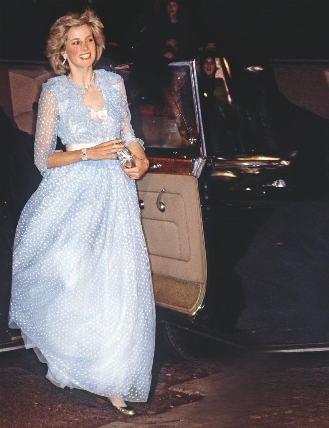 Diana’s love of texture and drama was showcased in this frothy confection of a dress by the Emanuels, which she wore to a concert in Cardiff in 1982