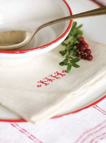 ‘Welcome to our table,’ says Susanna Zacke and Sania Hedengren, authors of The Whimsical Home (Skyhorse Publishing, £25). ‘The crockery was originally white but was made Christmassy by adding a red edge,’ they reveal, a project which can be easily copied at home with a tube of red porcelain paint and a fine brush. Plus, the more wobbly it is, the more charming the effects will be – bonus!