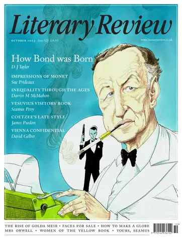 D J Taylor on Ian Fleming * Avi Shilon on Golda Meir * David Wheatley on Seamus Heaney’s letters * Sue Prideaux on Monet * Eileen M Hunt on Mrs Orwell * Seamus Perry on Vesuvius’s visitors’ book * Darrin M McMahon on the history of inequality * David Gelber on Austria * Don Paterson on music criticism * Martin Vander Weyer on Elon Musk * Peter Davidson on Proust’s manuscripts * Tim Hornyak on face recognition technology * James Purdon on J M Coetzee * Suzi Feay on Jeanette Winterson * Uilleam Blacker on Witold Gombrowicz *