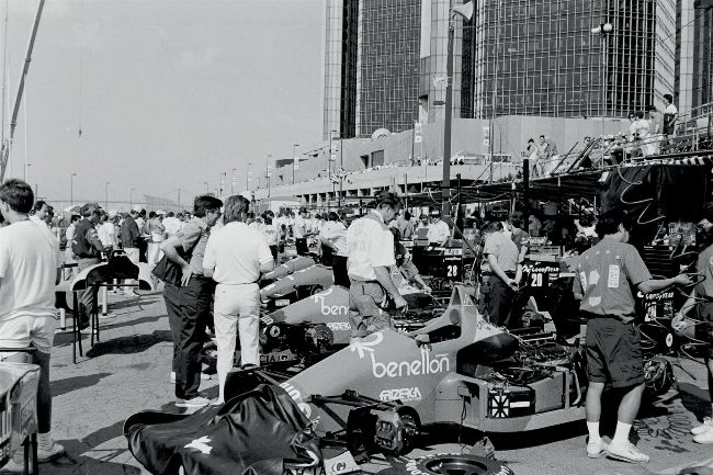 According to my notes from 1988, the Benettons in the foreground had several significant technical tweaks in place for this race in Detroit. Having finished third the previous weekend in Montreal, Benetton was in a fight for championship runner-up with pitlane neighbour, Ferrari. And yet here we were with everything exposed for all the world to see. In today’s egotistical F1 ecosphere, the cars would be behind screens with security heavies only too keen to block all sightseers while team principals engage in spats on TV.