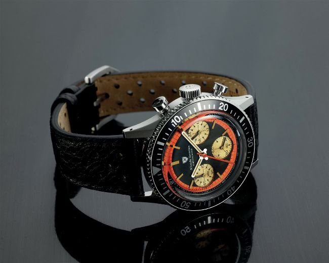 With its stand-out sub-dials and orange detailing, this Nivada Grenchen resembles a timepiece that the Winning actor wore