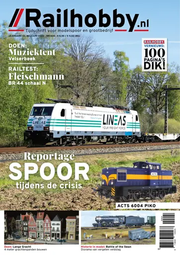 In Railhobby 424 vindt u het tweede deel over de oorlogslocs. In dit deel bekijken we de Amerikaanse oorlogslocs die over de wereld werden verspreid, zowel in het groot als in nagemaakt in model. Ook is er aandacht voor de situatie op het spoor in deze crisistijd. Zowel de situatie in Nederland als in het buitenland komt aan bod. Piko leverde onlangs de vierassige V 60 als ACTS diesellocomotief 6004 uit. In een Uitgelicht wordt dit model uitvoerig besproken. Verder gaan we aan de slag met de muziektent uit Velserbeek in H0. In de Gouden Eeuw zijn in veel handelssteden historische gevels gebouwd. Dat leidde tot de uitdaging om het tafereel in 1:87 na te bouwen. Het werden vier strekkende meters aan grachtenpanden. Zoals veel modelspoorders is Arie den Heijer begonnen met analoog aangestuurde treinen. Zeven jaar geleden werd zijn belangstelling gewekt voor het digitaliseren. Hij vertelt welke weg hij hierin heeft gevolgd. On30 (1:48) is geen alledaagse schaalgrootte. De Fransman Jack Trèves bouwde een Cubaans diorama in deze schaal, Habana Northern. Een fictief, alleszins boeiend thema anno 1935.