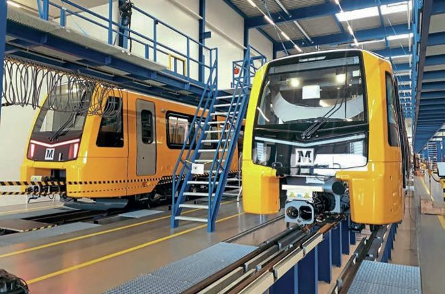 CLASS 555s READY FOR TESTING: The initial two new trains of a fleet of 46 being built by Stadler for the Tyne & Wear Metro have been completed in Switzerland. A period of static and dynamic testing will take place before the vehicles are moved to the Czech Republic for more extensive test track trials. The first of the new five-car units, which have received the Class 555 TOPS designation, is due to arrive on Tyneside before the end of the year.