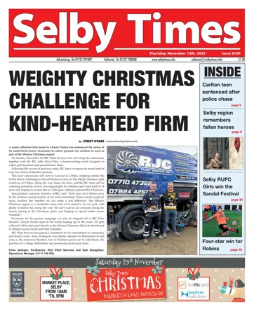 Hieronder vindt u een selectie van artikelen in Selby Times November 13th 2025.