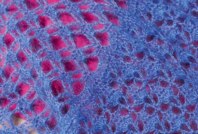 The shawl is made up of two stitch patterns, which are worked in three sections