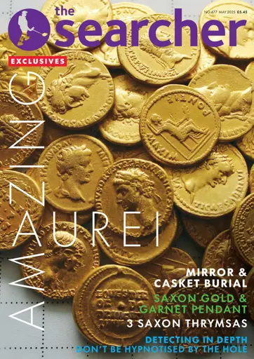 Our EXCLUSIVE cover story is a highly significant hoard of Roman gold aurei found in Sulfolk. Team Searcher’s Robert Turrell reports on how events unfolded and Tom Lucking researches the coins that make up the hoard. Truly a find of a lifetime! Other highlights within this issue are rare a Mirror-and-casket burial discovered by Tom Licence, who examines the significance of this rare find and compares it to others found. There’s also a lovely Anglo Saxon gold and garnet pendant found by Graham Gislam and an extremely rare Saxon thrymsa, too. In this month’s Detecting in Depth, Neil Ham and Scott Sibbald’s article is ‘Don’t be hypnotised by the hole’ and in the second in the series, ‘Metal Detecting Research Secrets’ David Villanueva advises on how to best use Ordnance Survey Maps. There is, of course, much more in this issue to inform and inspire you.