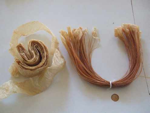 Dried cow gut (left) and sheep gut (right) have very different physical properties
