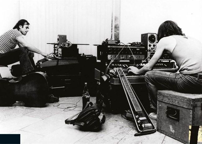 Construction time again: Roedelius (left) and Moebius in the studio circa 1970
