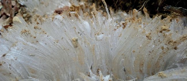 Even if it is not an ice swim, on the way to and from water look out for the different forms that ice can take. Having lived in houses with central heating, fern frost was something I’d heard of but never seen. Spending a winter night in an old lighthouse on the Hudson River I woke up to see delicate patterns of fern frost inside a window that was an oldfashioned single pane of glass. Fern frost happens when water goes from gaseous to solid, skipping out the liquid phase of cooling. Particles of dust or dirt on the glass serve as nucleation points, and their haphazard distribution gives fern frost its characteristic abstract shape.