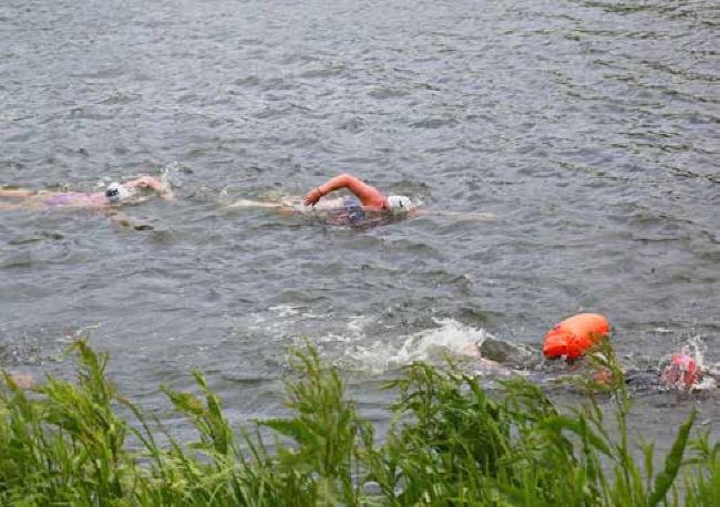 1600 champion swimmers brave rain, wind, chop and a few twigs at the annual Dart 10k.