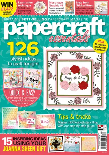 Issue 162 •126 stylish ideas to craft tonight •Quick & easy – First Edition’s unmissable designs for birthdays and more •Tips & tricks – Master ink-blended stencilling with our step-by-step guide •Learn a fun technique – Perfect your paper piecing with our help •Must-have Graphic 45 – Beach-inspired makes for men and women •New from StickerKitten – All-occasion cards with the Unicorn Fairground range •WIN £1,472 worth of prizes Plus 32 pages of floral paper downloads