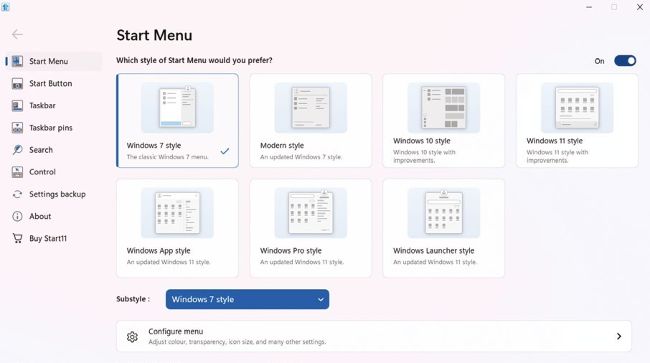 You can choose from seven different Start menu options