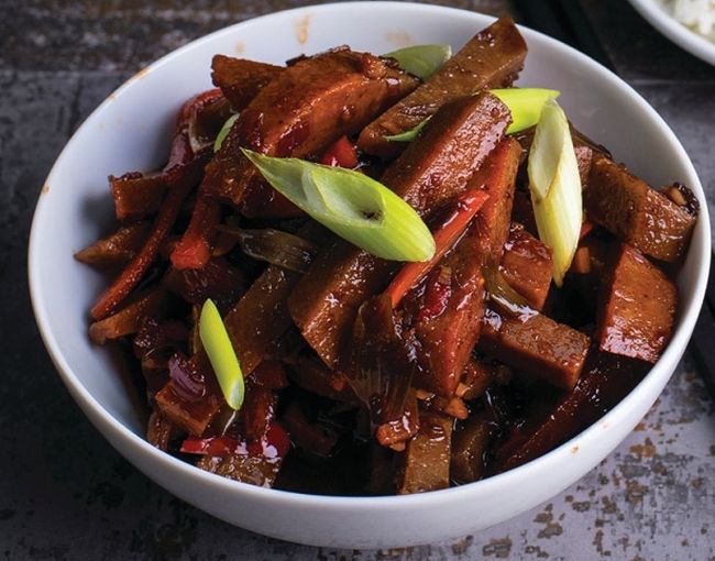 1 Mix all the dry ingredients for the seitan together in a large bowl, add the wet ingredients and mix everything together really well. Turn the dough out on to a work surface and knead for a couple of minutes to develop the gluten.