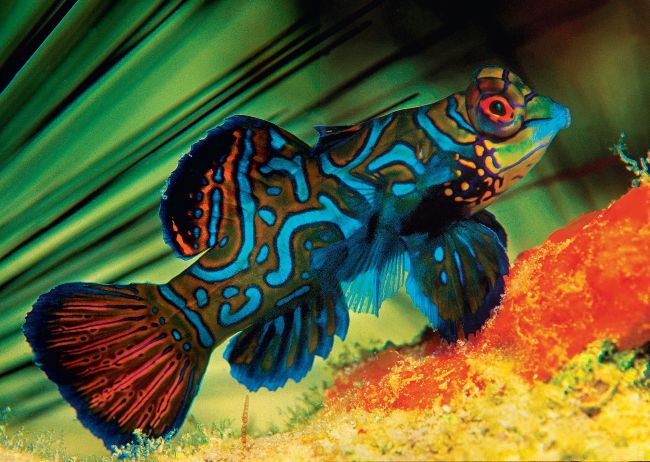 Many dragonets are cryptic, camouflaged with mottled patterns and blending in effortlessly with the substrates they inhabit. The Mandarin has no interest in such caution, and chooses instead to dress itself as the most flamboyant fish on the sheltered lagoons it calls home.