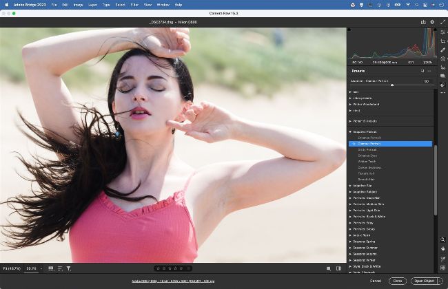 Presets can speed up your workflow by letting you apply a series of settings with a single click. They’ve always been useful for toning effects, but recently they’ve been improved with the addition of Adaptive Presets. These work in combination with the AI Masking tools, so you can make presets that combine with automatically generated masks to, for example, darken a sky or lighten a background. Head to the Preset Panel in Camera Raw or Lightroom, and you’ll find a set of People Presets that do things like enhance eyes and whiten teeth.