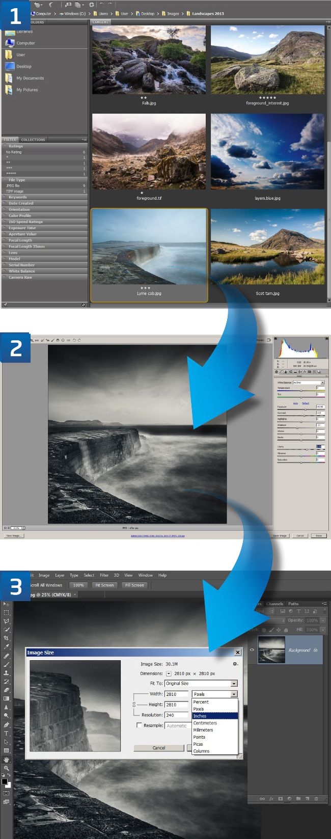 1 The first stage is to begin sifting through your pictures to discover which are the keepers. The image organizer that comes with Photoshop is ideal for this task. Adobe Bridge has controls for keywording, rating and filtering your images, and there are handy tools for batch renaming files, creating panoramic stitches, making contact sheets and more.