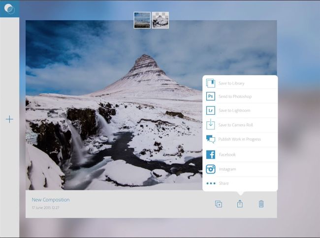Mix enables you to merge two photos together to create a composite image. It offers a simplified compositing process that makes it easy for beginners to start combining an object from one image with a background from another. You can then send the composite to Photoshop for further edits. If you like, you can also use Mix to edit a single image. It offers a few simple tonal adjustments and more complex edits such as Content-Aware Fill.