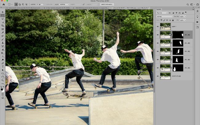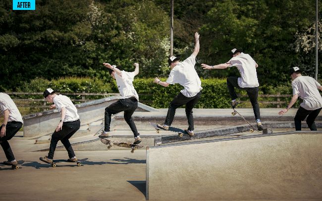 If you have a sequence of photos taken in alignment like this (using a tripod is best) then you can easily combine them into a single frame. This is great for a rapid-fire action sequence, but you can use the same technique to craft a multiplicity portrait - where the same person appears in multiple places throughout the scene - or perhaps to remove annoying bystanders from your landscape scene by taking different versions where people are standing in different places.
