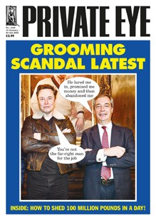 …I was appalled to see the cover of your latest edition, showing Musk and Farage and headed “Grooming Scandal Latest”. Ironically, Farage offered an emotive speech asking for an inquiry at PMQs this week.