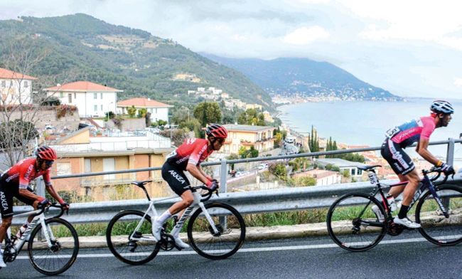 Not far up the Ligurian coastline from San Remo lies Colla Micheri, a two kilometre-long climb that’s the showpiece of its own early spring Italian race: Trofeo Laigueglia, the little sibling to Milan-San Remo. Colla Micheri might not have the prestige of the Cipressa or Poggio, but peaking at 14 per cent gradient and climbed no fewer than four times during the Italian semiclassic, it has just as much impact on the race’s outcome. Snaking up through the medieval town, the climb switches left and right before straightening out at its steepest section, meaning there’s no place to hide.